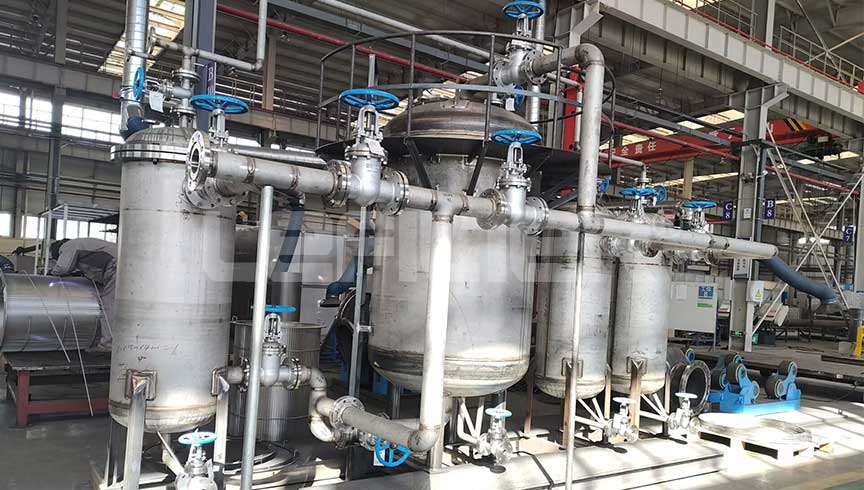胺液過濾器結(jié)合國內(nèi)脫硫裝置及使用胺液的特點而開發(fā)的高效過濾系統(tǒng),常用于石油、天然氣、煤化工、合成氨等化工過程對脫硫胺溶液所存在的污染物進行過濾清潔的高效過濾設(shè)備。是胺液的凈化系統(tǒng)中的其中一種設(shè)備,胺液凈化系統(tǒng)就是脫硫脫碳過程中被其他雜質(zhì)如熱穩(wěn)態(tài)鹽類污染的胺液重新再生。其實就是富胺液經(jīng)過加熱蒸餾,回送到吸附塔,循環(huán)使用。富胺液與貧胺液之間的轉(zhuǎn)化。