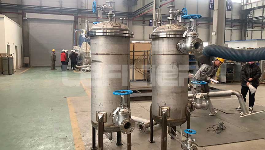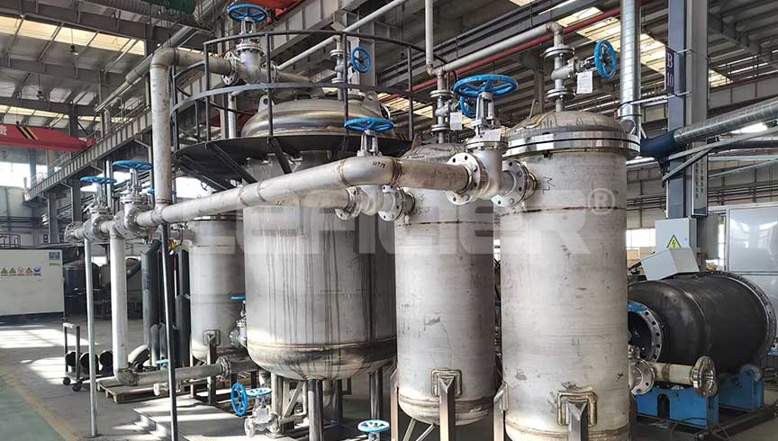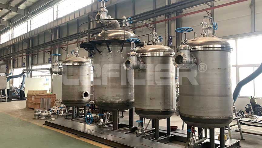 一級采用可清洗的嵌入式斜槽線金屬濾網(wǎng)過濾,過濾精度25μm,對胺液系統(tǒng)中存在的固體顆粒物進行過濾,定期進行反洗,實現(xiàn)了金屬濾芯的再生。二級采用大容量活性炭與多孔活性濾料結(jié)合的深層濾床,特別適合胺液中有機物類的吸附。三級采用超精細袋式過濾器或不銹鋼金屬濾芯,過濾精度達5μm,對剩余微量的懸浮狀固體進行截留,是一款三級撬裝設(shè)備,可根據(jù)客戶要求增加或減少過濾單元,也可實現(xiàn)一備一用。