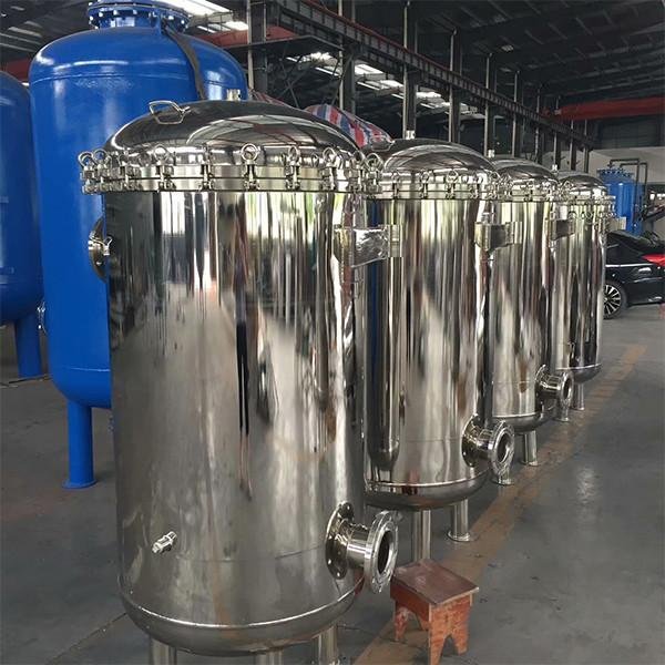 304不銹鋼保安過濾器主要用在多介質(zhì)預(yù)處理過濾之后,反滲透、超濾等膜過濾設(shè)備之前。該保安過濾器用來(lái)濾除經(jīng)多介質(zhì)過濾后的細(xì)小物質(zhì)(例如微小的石英沙,活性炭顆粒等),以確保水質(zhì)過濾精度及保護(hù)膜過濾元件不受大顆粒物質(zhì)的損壞。精密過濾裝置內(nèi)裝的過濾濾芯精度等級(jí)可分為0.5μs,1μs,5μs,10μs等,根據(jù)不同的使用場(chǎng)合選用不同的過濾精度,以保證后出水精度及保證后級(jí)膜元件的安全。