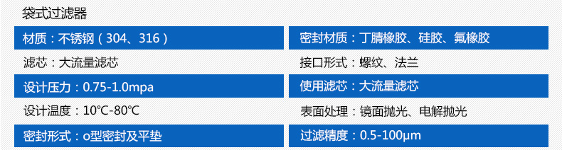 不銹鋼袋式過濾器相關(guān)技術(shù)參數(shù)