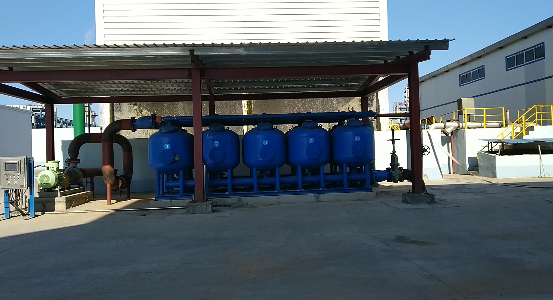 多介質(zhì)過濾器(濾床),既采用兩種以上的介質(zhì)作為濾層的介質(zhì)過濾器,在工業(yè)循環(huán)水處理系統(tǒng)中,用以去除污水中雜質(zhì)、吸附油等,使水質(zhì)符合循環(huán)使用的要求。過濾的作用,主要是去除水中的懸浮或膠態(tài)雜質(zhì),特別是能有效地去除沉淀技術(shù)不能去除的微小粒子和細(xì)菌等,BOD5和COD等也有某種程度的去除效果。