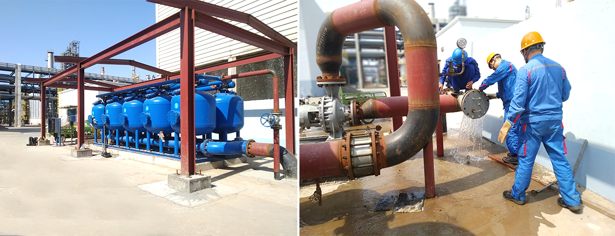 項目描述:主要過濾掉從長江中引入的小魚,小蝦,及細(xì)小雜物,確保引入到船閘中的水清潔干凈,我司趙經(jīng)理所帶領(lǐng)的團(tuán)隊,根據(jù)其現(xiàn)場的整個過濾系統(tǒng)制定相應(yīng)的解決方案,將淺層砂設(shè)備主體安裝于船舶外部,設(shè)備擺放整齊,經(jīng)過過濾后的水質(zhì)完全符合標(biāo)準(zhǔn)及客戶的要求,最終順利驗收,該設(shè)備自運行以來,狀況良好。