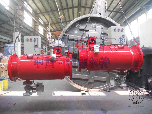 反沖洗自清洗過濾器的水由進水口進入過濾器,首先經(jīng)過粗濾芯組件濾掉較大顆粒的雜質(zhì),然后到達細濾網(wǎng),通過細濾網(wǎng)濾除細小顆粒的雜質(zhì)后,清水由出水口排出。在過濾過程中,細濾網(wǎng)的內(nèi)層雜質(zhì)逐漸堆積,它的內(nèi)外兩側就形成了一個壓差。當這個壓差達到預設值時,過濾器將開始自動清洗過程:排污閥打開,主管組件的水力馬達室和水力缸釋放壓力并將水排出;水力馬達室及吸污管內(nèi)的壓力大幅下降,由于負壓作用,通過吸嘴吸取細濾網(wǎng)內(nèi)壁的污物,由水力馬達流入水力馬達室,由排污閥排出,形成一個吸污過程。當水流經(jīng)過濾器水力馬達時,帶動吸污管進行旋轉,由水力缸活塞帶動吸污管作軸向運動,吸污器組件通過軸向運動與旋轉運動的結合將整個濾網(wǎng)內(nèi)表面完全清洗干凈。整個清洗過程將持續(xù)數(shù)十秒。排污閥在清洗結束時關閉,增加的水壓會使水力缸活塞回到其初始位置,自清洗過濾器開始準備下一個沖洗周期。在清洗過程中,過濾機正常的過濾工作不間斷。