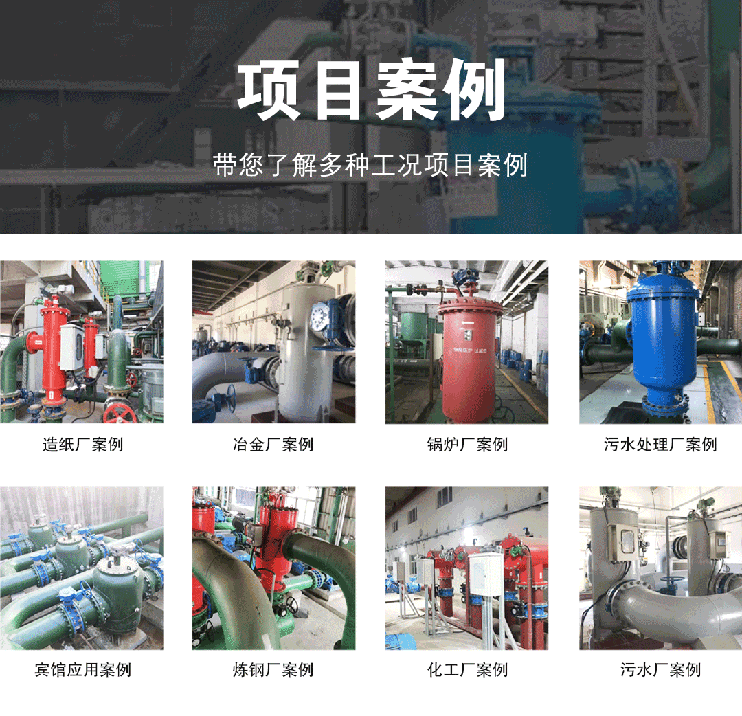 1、自清洗過濾器高進(jìn)低出結(jié)構(gòu)設(shè)計,流量大,適用于傳統(tǒng)工藝布局。